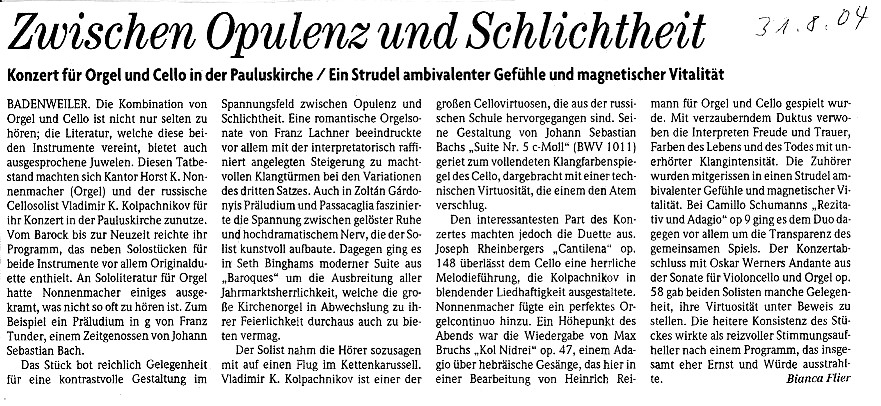 Konzert für Orgel und Cello in der Pauluskirche / Ein Strudel ambivalenter Gefühle und magnetischer Vitalität